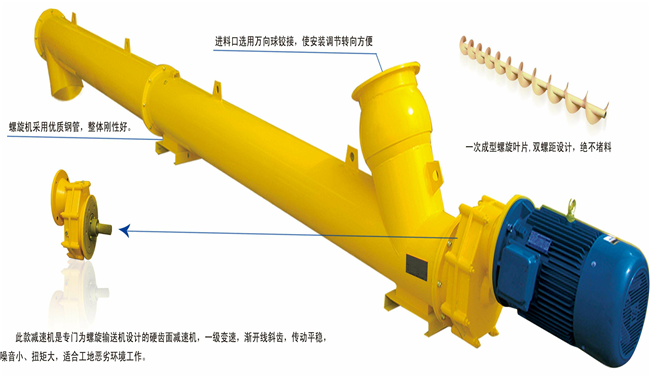 1、是由專用齒輪減速電機(jī)裝置與外殼管,螺旋總成依次相連,結(jié)合成一臺(tái)整套設(shè)備,移動(dòng)、拆裝十分方便。