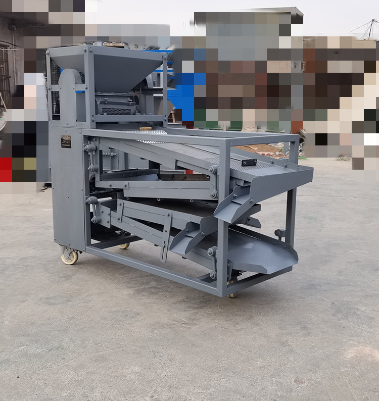 原枝花椒投進(jìn)料斗后--------粉碎裝置將原枝花椒進(jìn)行粉碎,將枝葉殼籽分別剝離下來(lái)--------通過(guò)下料器一起落到篩面上進(jìn)行分離篩分---------一層將篩出來(lái)的是大枝干、梅花椒、石子,復(fù)試篩網(wǎng)篩出來(lái)的是花椒枝--------二層篩出來(lái)的是花椒籽,椒籽出來(lái)的地方有風(fēng)機(jī),將里面輕的雜質(zhì)篩選出來(lái)-------三層是為篩分椒枝設(shè)計(jì),整層篩出來(lái)都是花椒枝------底層篩出來(lái)的是花椒殼,復(fù)試篩網(wǎng)是塵土雜質(zhì)等。
