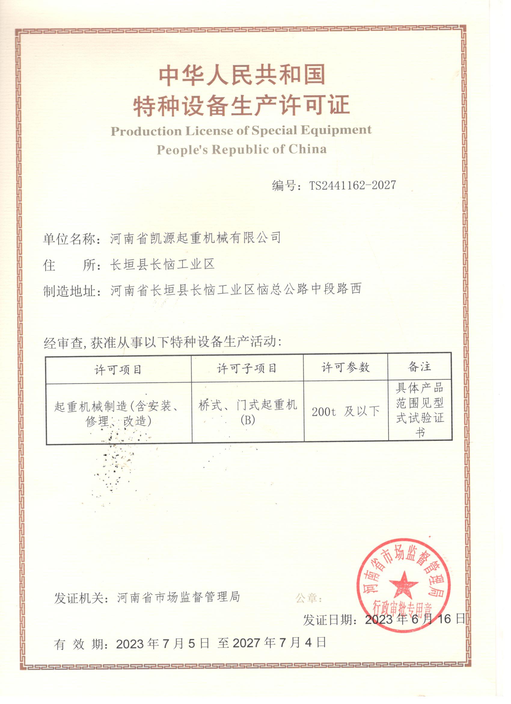 特種設備生產許可證