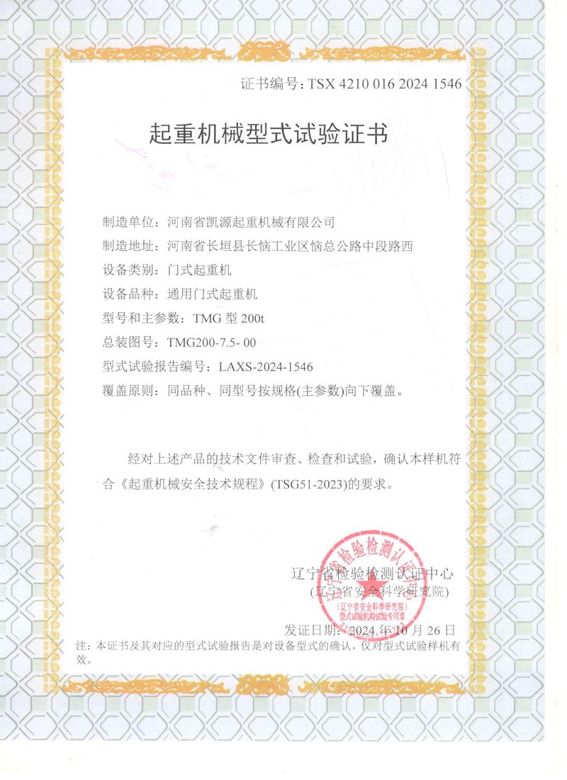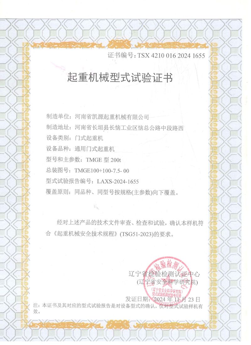 起重機械型式試驗證書
